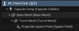 또, 다음과 같이 Pawn에 필요한 Static Mesh Component와 Scene Component도 추가해주었습니다.