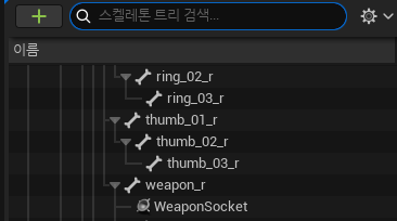 weapon_r의 하위에 "WeaponSocket"이라는 임시 소켓을 만들어둡니다.
